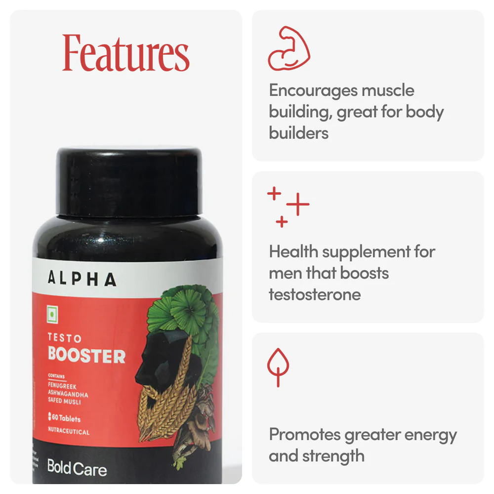 Bold Care Alpha is used to naturally support testosterone levels in men. It helps improve physical strength, muscle tone, metabolic rate, and overall fertility by utilizing a blend of Ashwagandha, Ginseng, and Fenugreek.